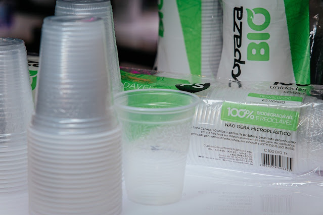 | A tecnologia usada no processo de produção dos copos ecológicos é inédito no país e acontece por meio da enzima BioSphere. |
